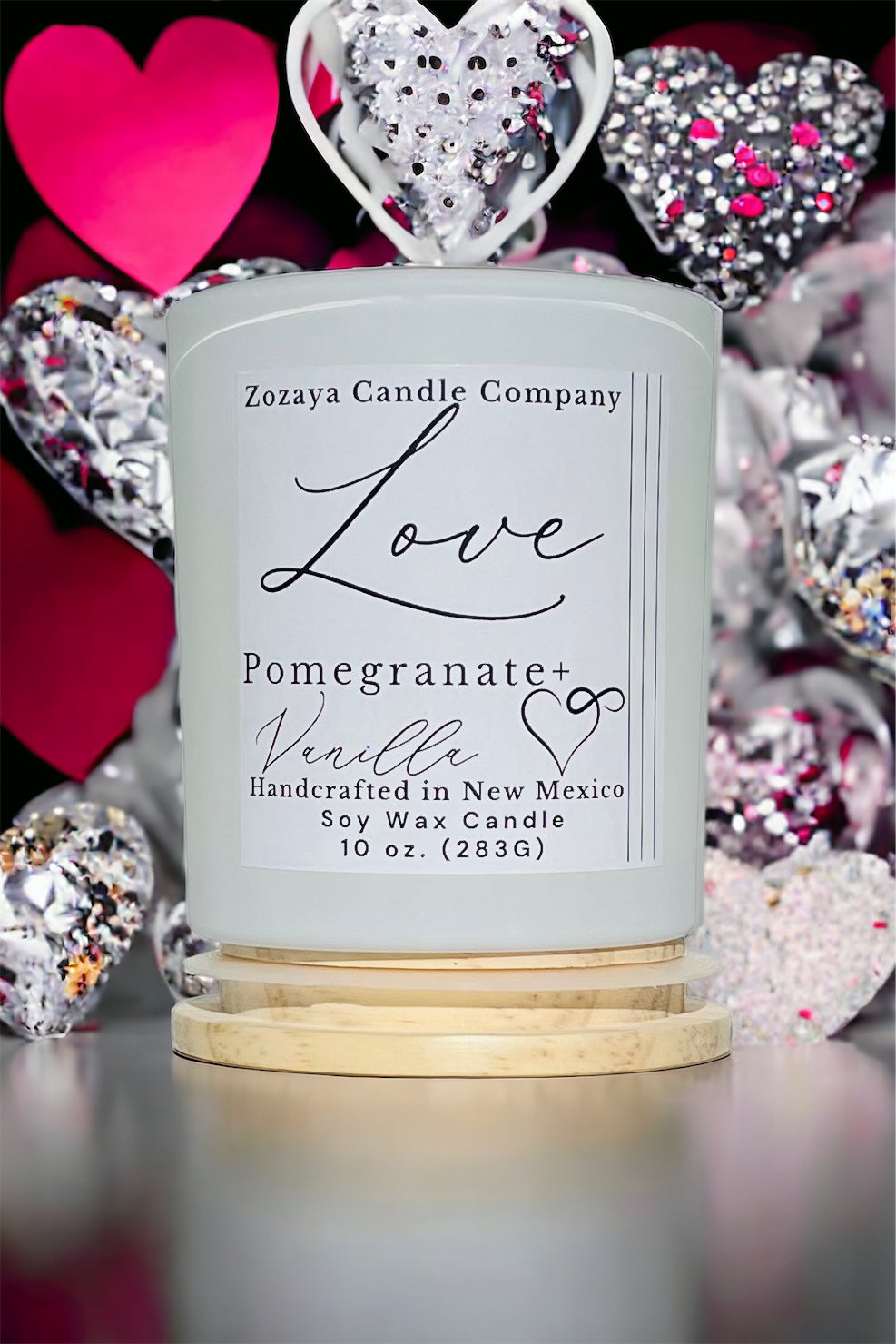Light up your life with our Love candle! Infused with the power of love, this candle will fill any room with a warm and comforting energy with notes of pomegranate and vanilla. Perfect for a romantic evening or a self-care night, our candle will bring love and light into your life.
