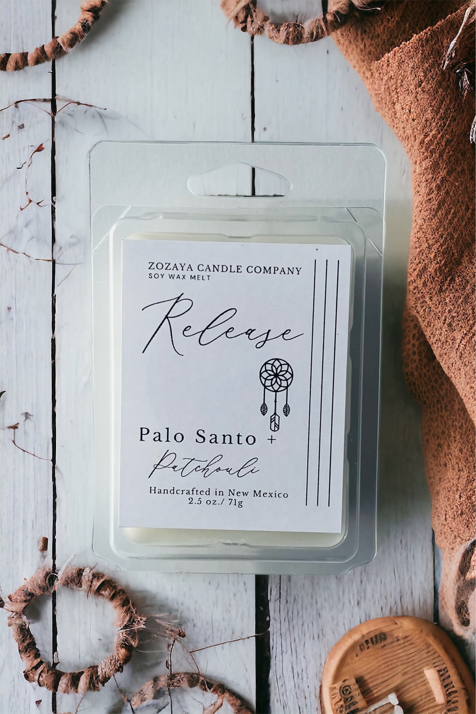 This Release wax melt brings powerful benefits with its combination of palo santo and patchouli oils. The all-natural wax base is enriched with both oils, perfect for providing a calming scent and mood. It'll help promote relaxation and tranquility no matter where you use it.
